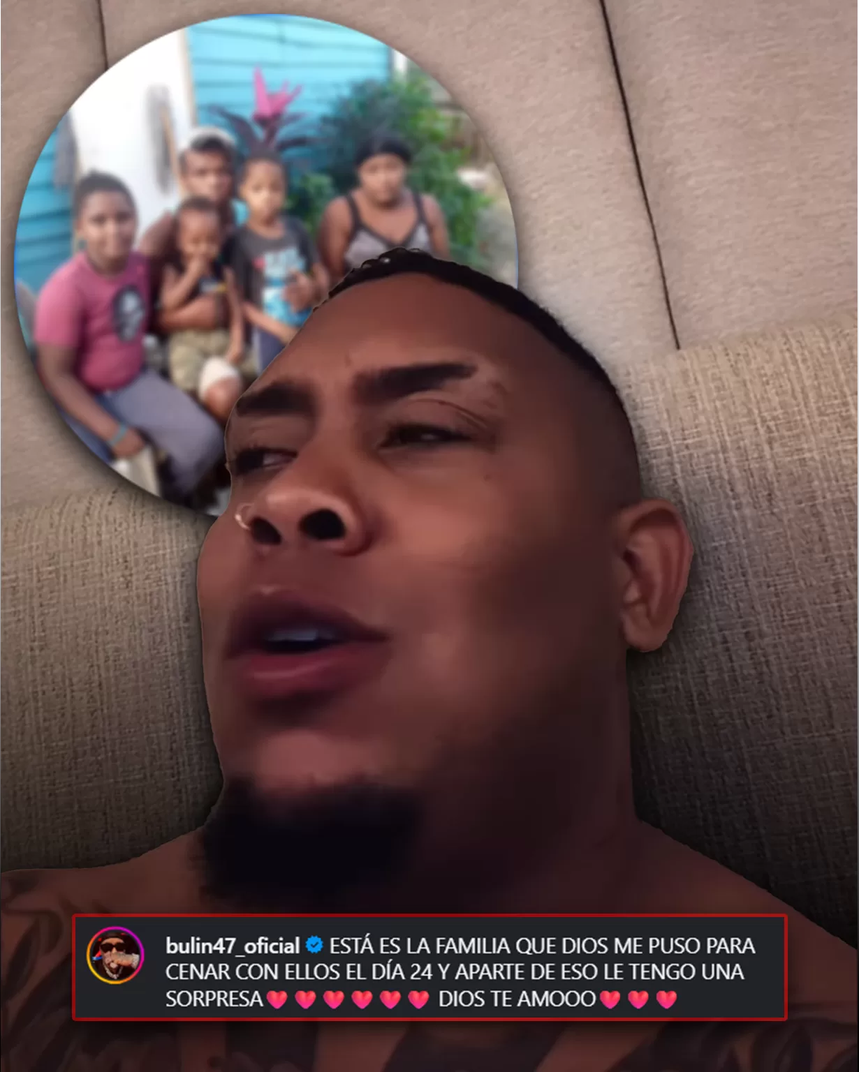La noticia salió directamente desde su cuenta oficial de Instagram, donde el artista publicó un mensaje cargado de emoción y gratitud. “Esta es la familia que Dios me puso para cenar con ellos el día 24… y aparte de eso le tengo una sorpresa. Dios te amooo”, escribió, acompañado de corazones rojos. Un mensaje sencillo, pero poderoso, que rápidamente se volvió viral.