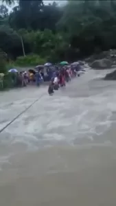 De acuerdo con testigos, la mujer comenzó a sentir contracciones fuertes mientras se encontraba en su hogar, pero al intentar salir se topó con que la única vía para llegar al centro médico estaba bloqueada por la crecida del río. La situación generó preocupación en los vecinos, quienes rápidamente se organizaron para ayudarla a cruzar.