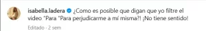A través de un comentario en su cuenta oficial de Instagram, Isabella Ladera expresó con firmeza su indignación ante los rumores: