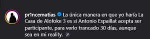 Lo que sí es indiscutible es que Santiago Matías volvió a dominar la conversación. Sin anunciar fechas, sin confirmar producción y sin mostrar avances, logró que todo el país hablara de La Casa de Alofoke 3… solo con una condición.